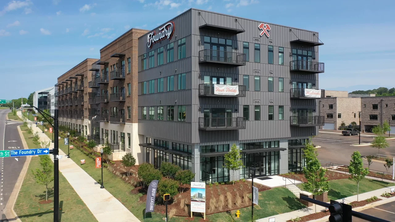 The Foundry at Stovehouse is a new community that offers luxury apartments and townhomes in a prime location in Huntsville, AL. Developed with modern design and functionality in mind, The Foundry at Stovehouse offers a range of floorplan options to suit various lifestyles and budgets. From cozy studios to spacious three-bedroom units, there is something for everyone. The apartments and townhomes at The Foundry at Stovehouse are designed with a modern aesthetic and feature high-end finishes. From stainless steel appliances and quartz countertops to oversized closets and private outdoor spaces, no detail has been overlooked. Our community provides modern design, top-notch